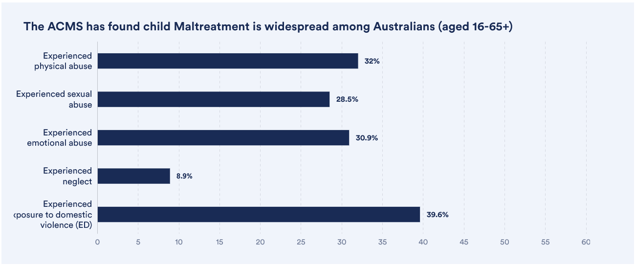 The ACMS has found child Maltreatment is widespread among Australians (aged 16-65+